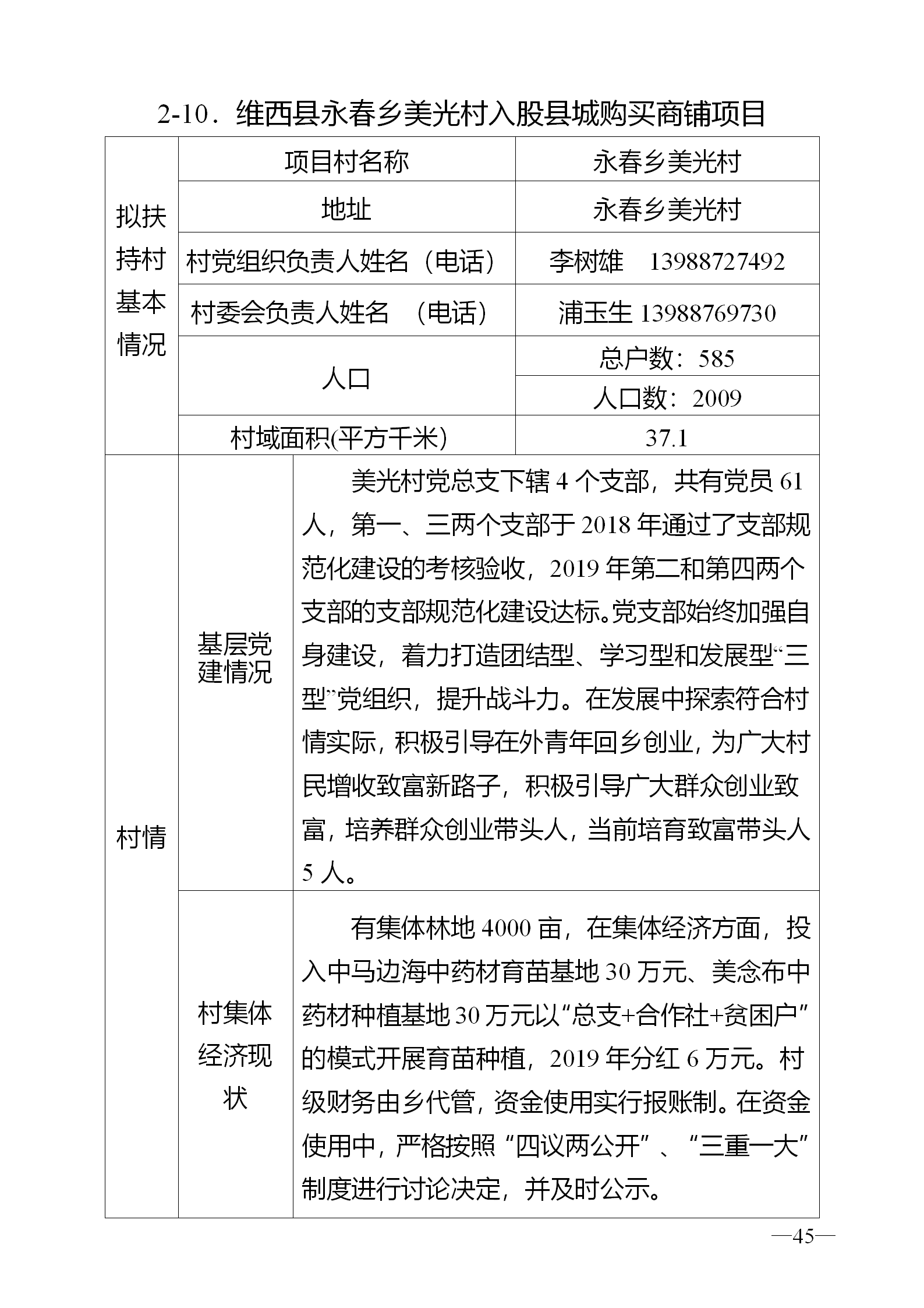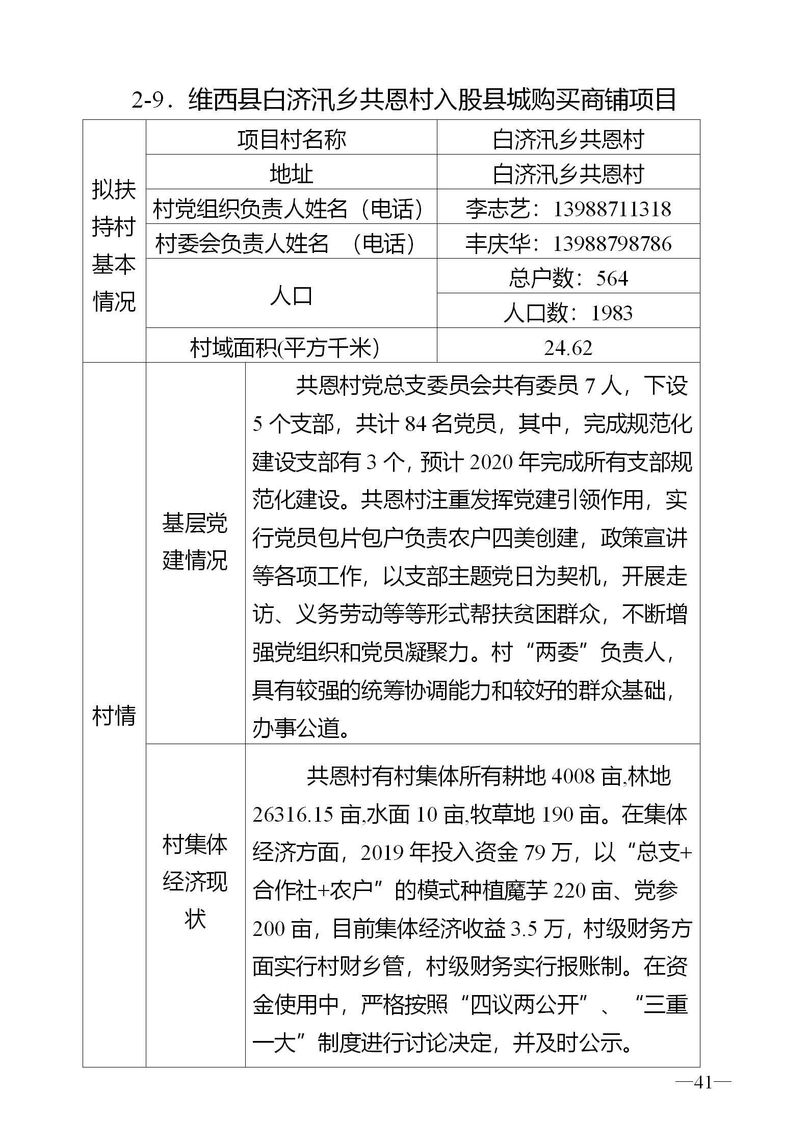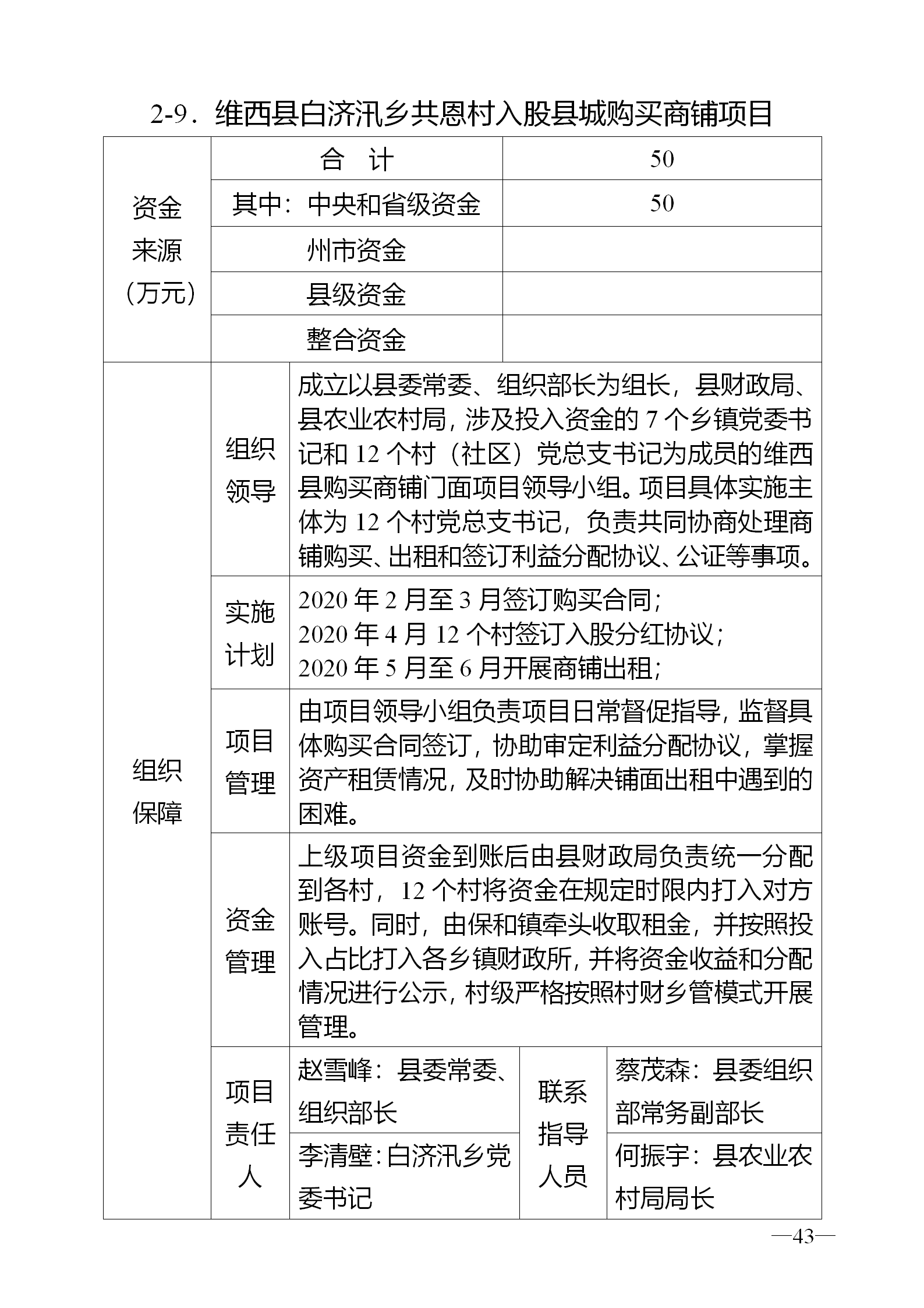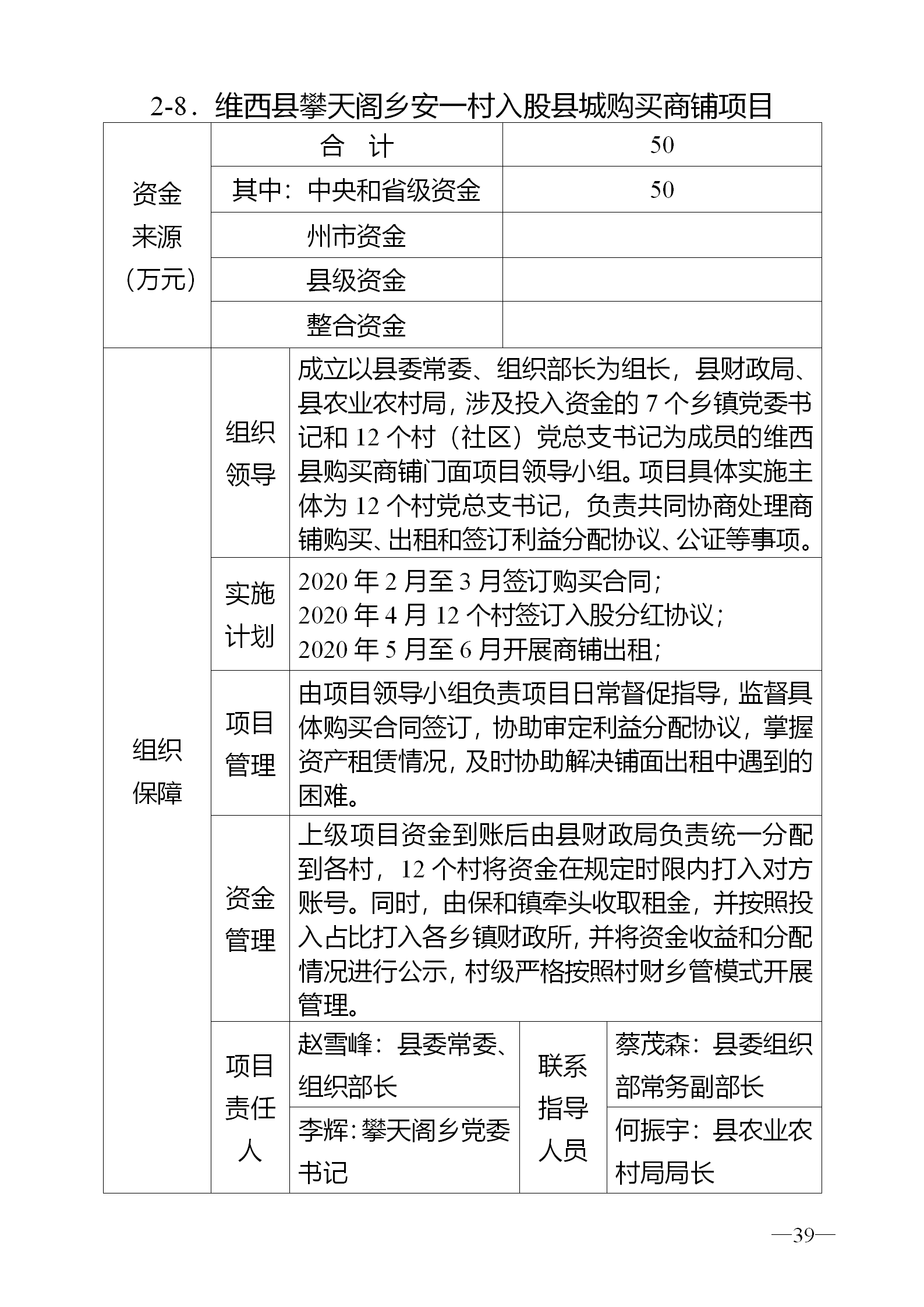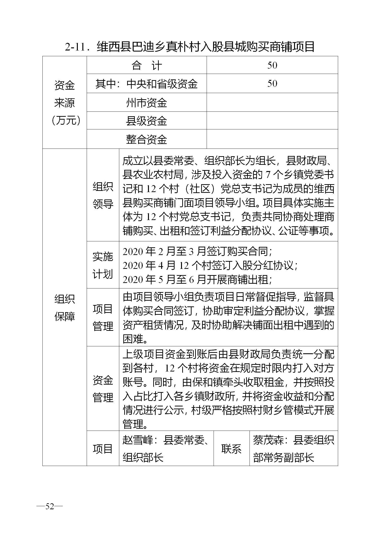 【永春乡】维西县2020年扶持壮大村级集体经济 项目实施方案