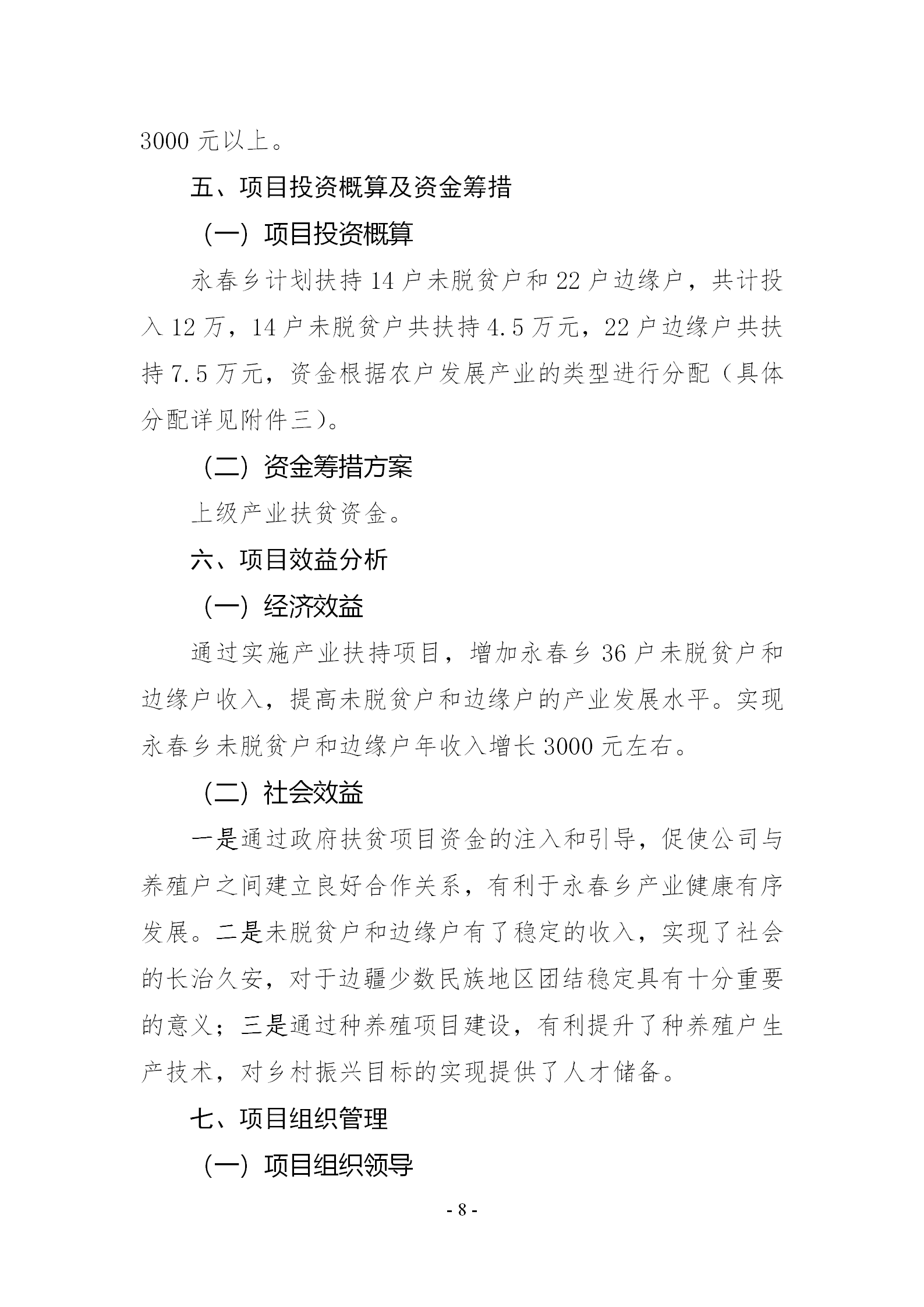 【永春乡】永春乡保障2019年未脱贫户和边缘户收入达标扶贫产业项目实施方案