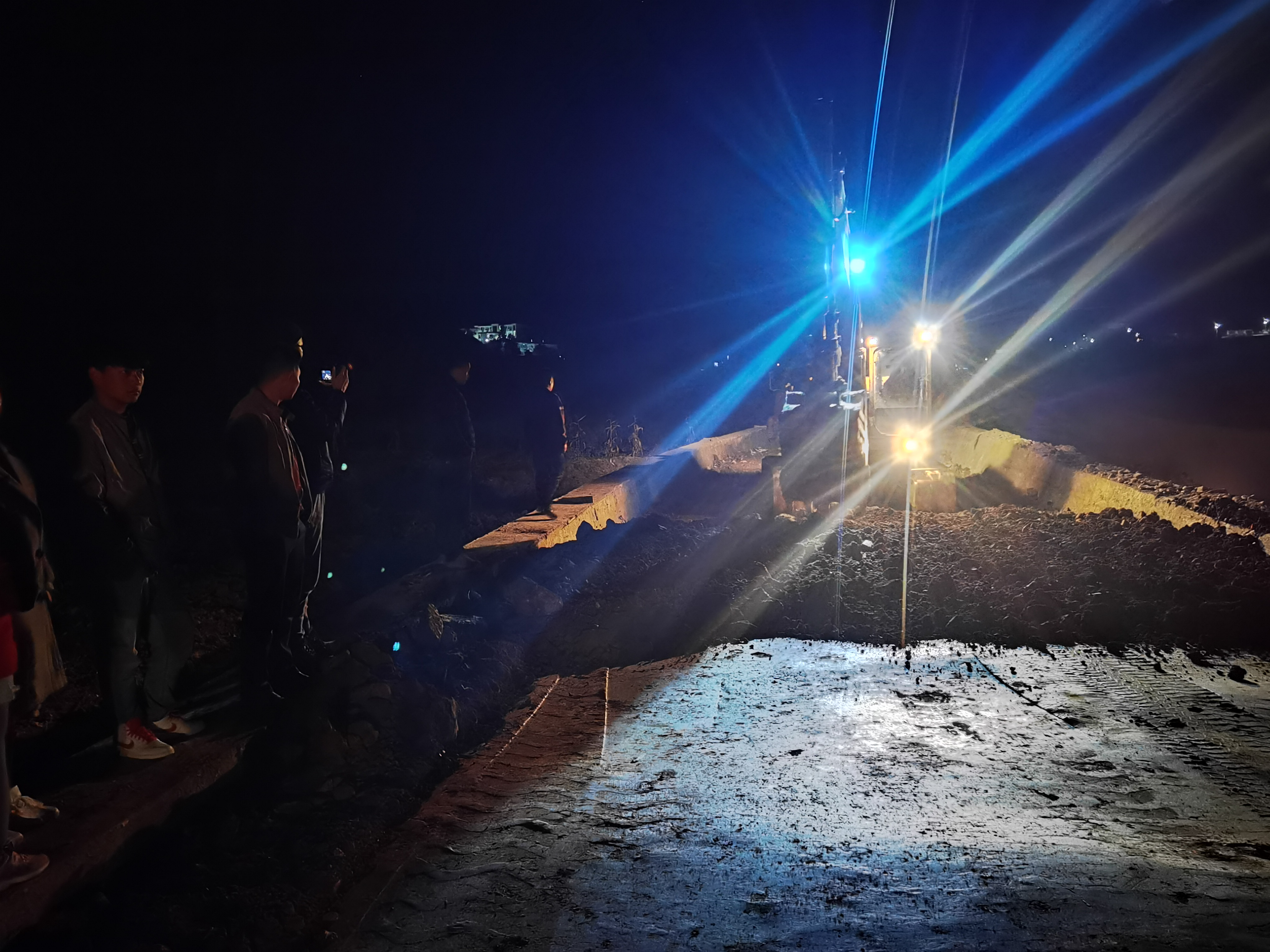 11月15日晚9时许,维西永春乡拖枝村寒风凛凛,“隆隆”的机械声打破了夜的寂静,拖枝村学校至隆仕通组道路硬化工程正在抓紧施工。冒着寒冷,踏着泥泞,维西县委副书记和俊昌、维西县扶贫办主要领导、永春乡政府主要拉领导、三峡集团派驻维西扶贫干部等在施工一线现场解决工程建设中存在的困难和问题。