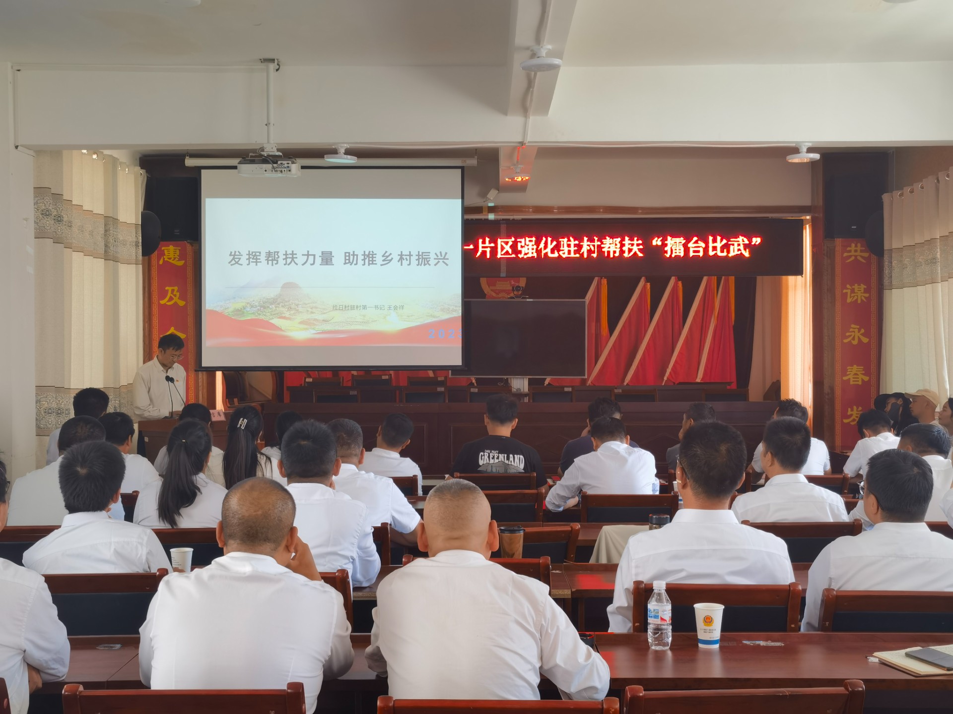 为切实发挥驻村干部的驻村帮扶作用,营造比学赶超、争创一流的浓厚氛围,为乡村振兴“蓄势赋能”,9月5日,永春乡开展以“强化驻村帮扶”为主题的 2023 年党建联建区第一片区第二次党建联建和“擂台比武”活动,县委组织部领导、县乡村振兴局、永春乡、保和镇、攀天阁乡和塔城镇分管党建副书记、组织委员、分管驻村工作队班子成员、驻村第一书记(工作队长)及“擂台比武”参赛驻村工作队员共40余人参加。