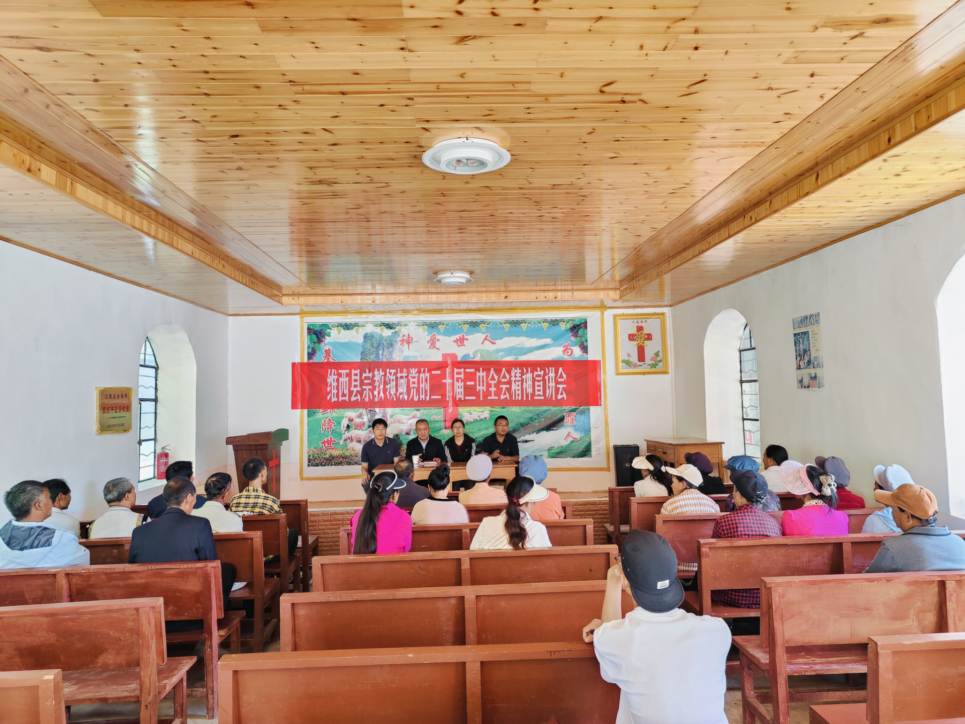 为全面深入学习领会党的二十届三中全会精神,扎实推进学习宣传贯彻工作,引导宗教团体把思想和行动统一到党的二十届三中全会精神上来,9月15日上午,永春乡庆福村教堂点州级挂联领导迪庆州人大常委会副主任余金全带领宣讲组到草坝子教堂开展党的二十届三中全会精神宣讲活动。