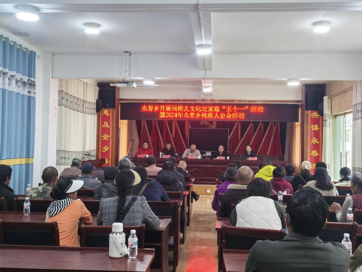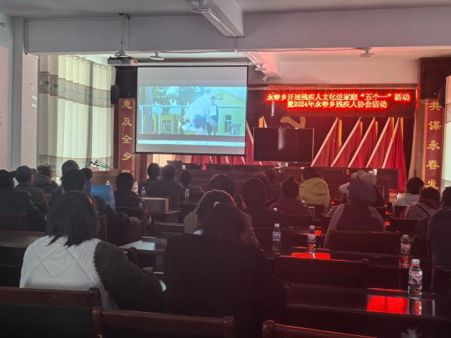 为丰富残疾人精神文化生活,增强对美好生活向往的激情,不断改善生活质量,让残疾人充分感受到党和政府关心,提高对脱贫攻坚成果同乡村振兴有效衔接的认可度,引导和鼓励残疾人走出家门,更好的融入社会。2024年11月6日永春乡残联组织辖区内50余名困难残疾人开展文化进家庭“五个一”活动暨2024年度残疾人协会活动。