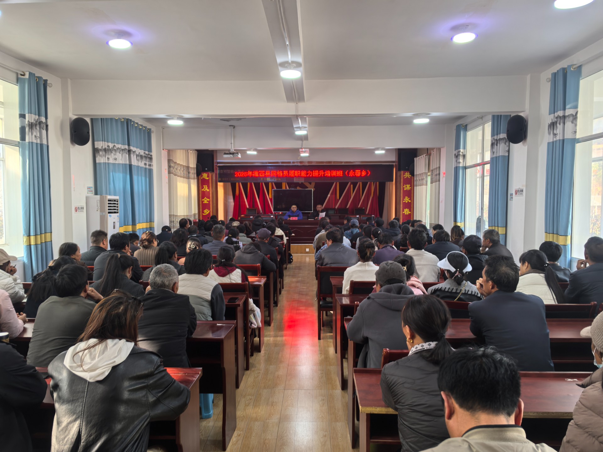 为深入贯彻落实基层社会治理工作部署,全面提升永春乡网格员政治素养、业务能力和实战水平。3月9日,县委政法委组织相关部门到永春乡开展 2026 年网格员履职能力提升培训,乡党委副书记、永春派出所及乡司法所负责人、乡综治中心全体工作人员、各村党总支书记、民宗干事、网格员共120余人参加培训。