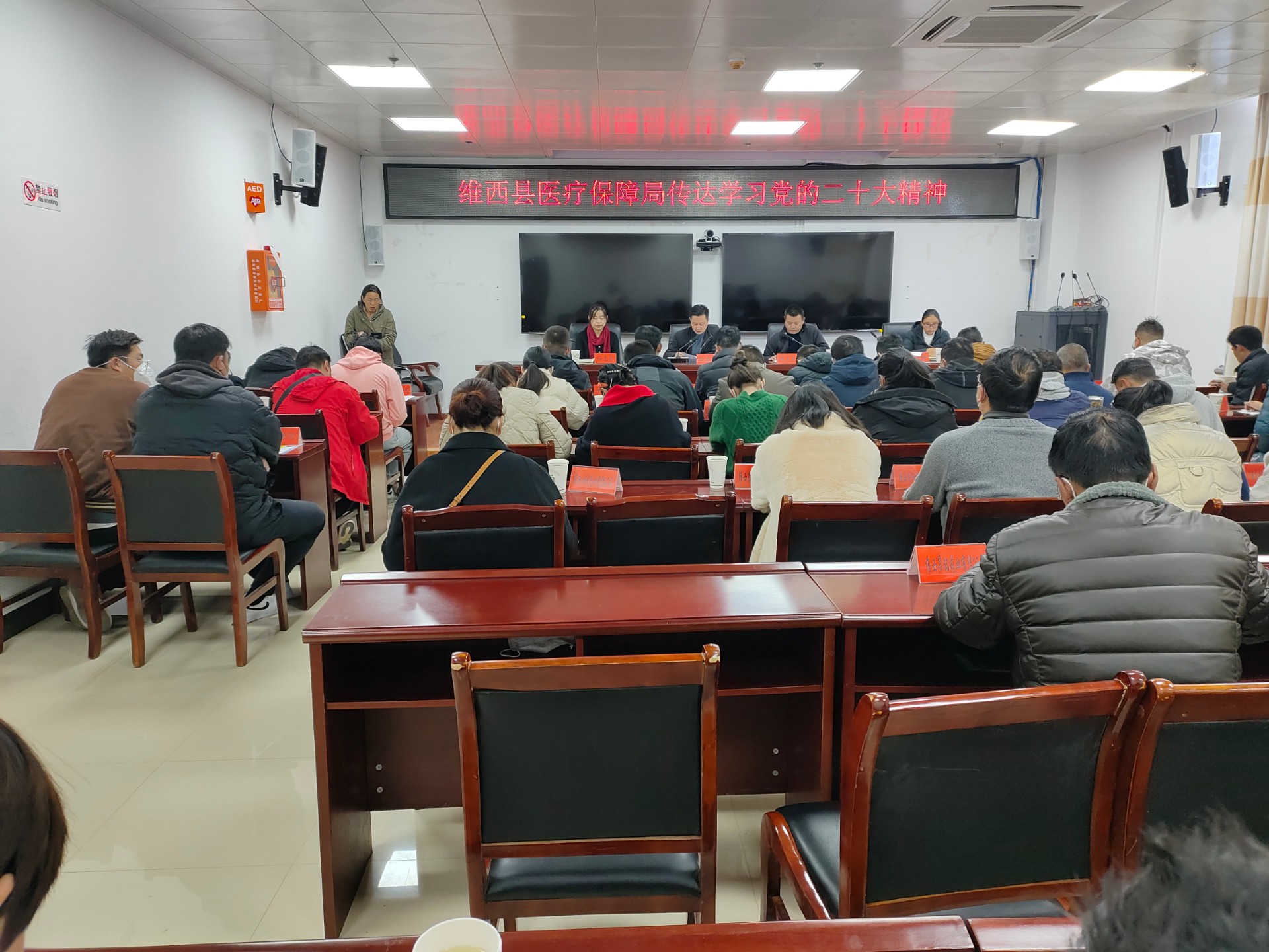 11月17日上午,维西县医保局组织医药机构召开党的二十大精神宣讲会,县医保局党组书记、局长张丽生作宣讲由县医保局党组成员、副局长黄志宏主持。
