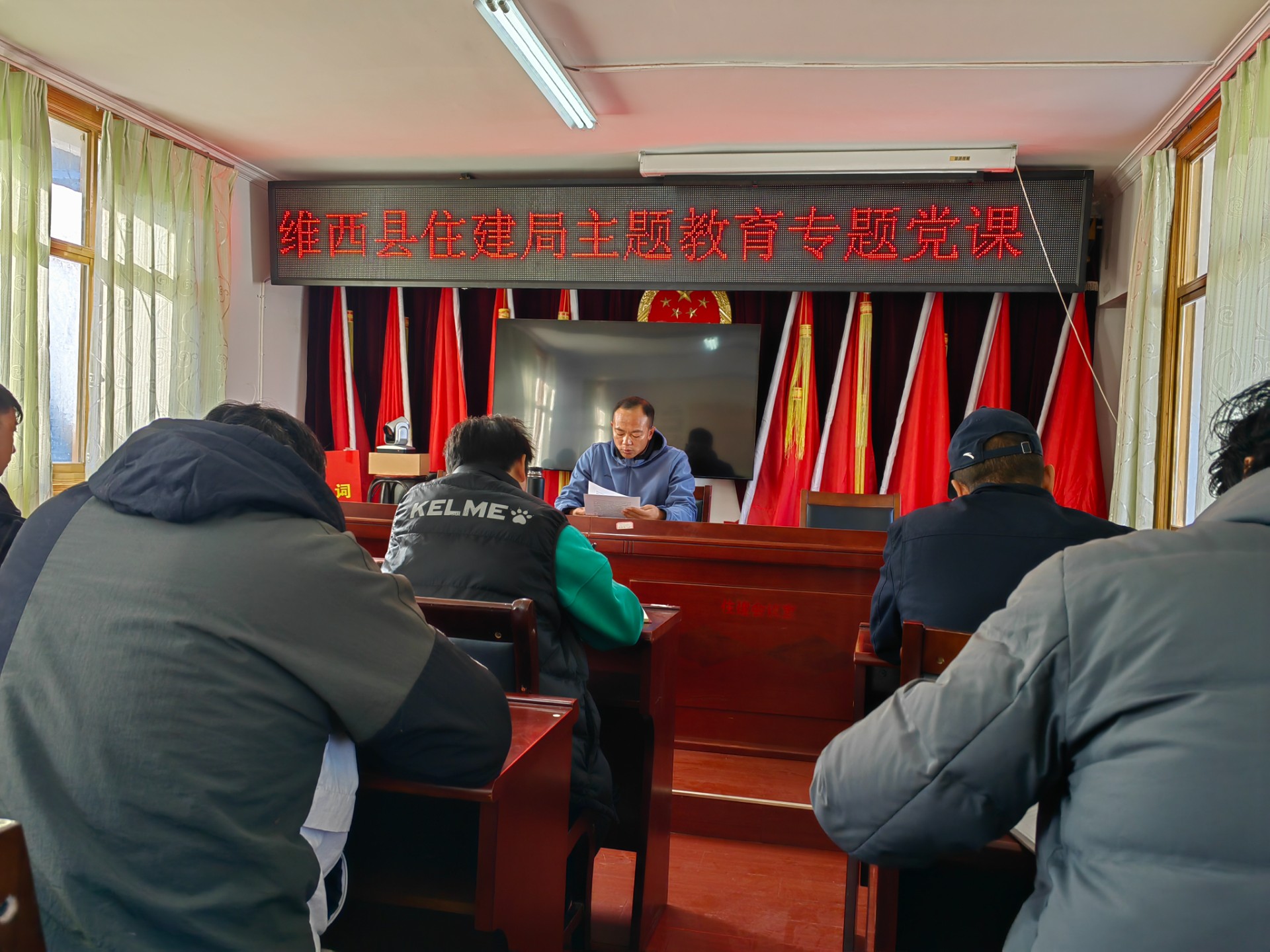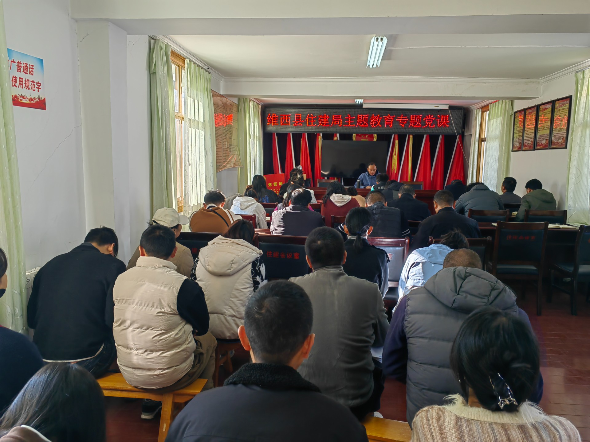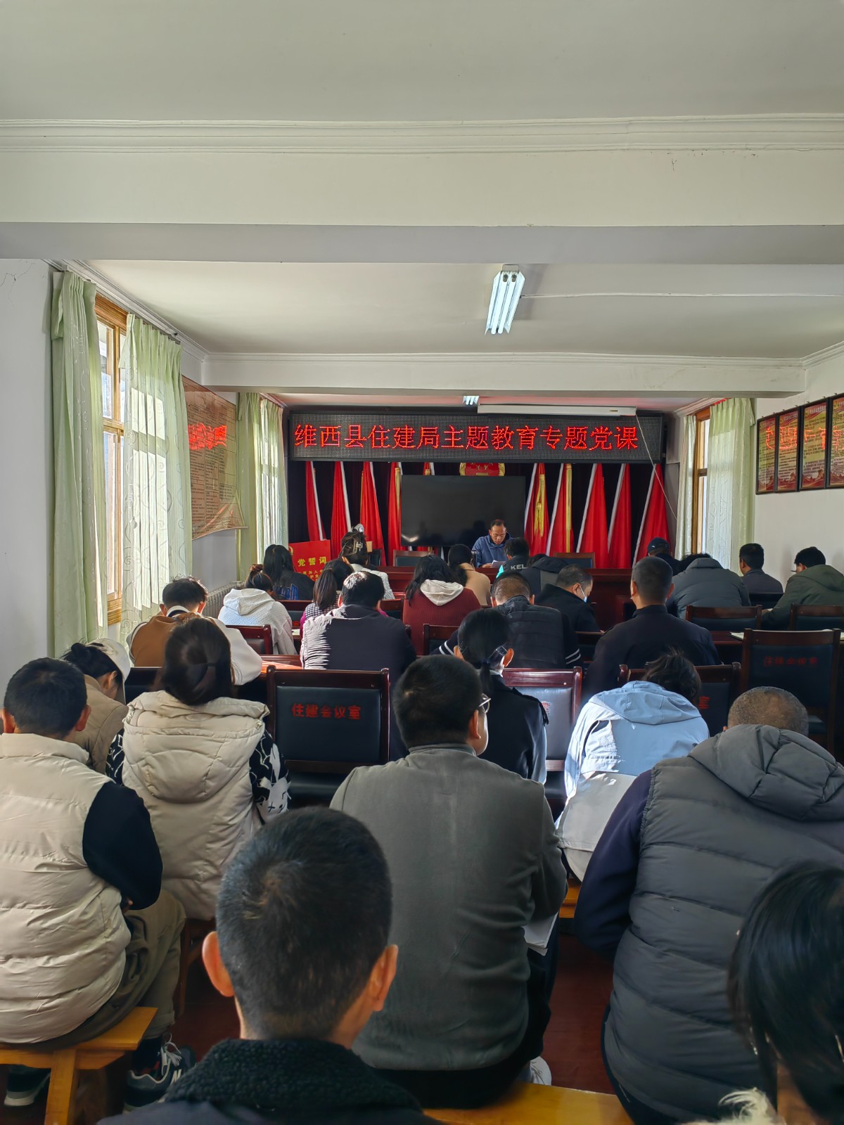 11月9日,维西县住房和城乡建设局组织讲授学习贯彻习近平新时代中国特色社会主义思想主题教育专题党课,党委书记、局长根据专题党课“三个必讲”的要求,围绕“感悟思想伟力,凝聚奋进力量,谱写住建新篇章”这一主题进行了讲授。