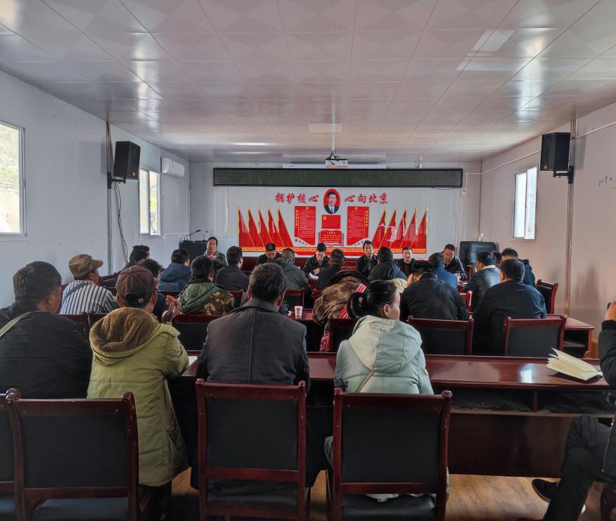 11月18日上午,州人大常委党组副书记、副主任一级巡视员余胜祥,州人大常委会副主任杨建华,州人大常委会副秘书长、办公室主任罗天诚一行到中路乡拉嘎洛村开展调研指导工作,与乡村干部、党员代表围坐在一起,面对面宣讲党的十九届六中全会精神。要求全体干部群众要贯彻落实好党的十九届六中全会精神,确保县、乡两级人大换届选举工作依法有序推进。