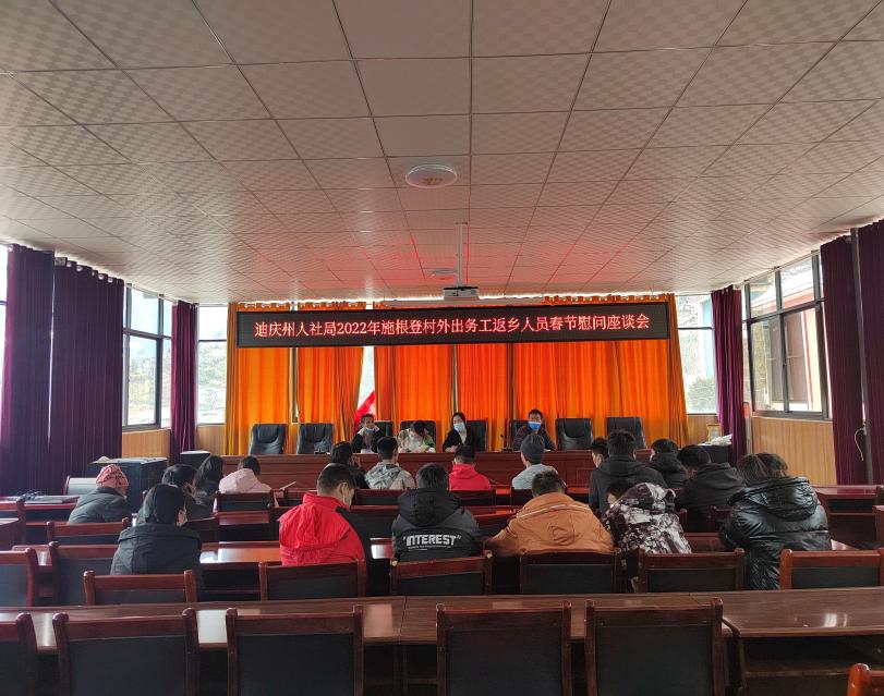 按照迪庆州2022年农村劳动力转移就业“百日行动”的统一部署,为了进一步了解返乡人员外出务工情况,扎实做好春节前返乡务工人员服务保障工作。2022年1月19日下午,迪庆州人社局在挂钩点施根登村组织外出务工返乡人员春节慰问座谈会,施根登村党总支副书记、施根登村驻村工作队、施根登村人社信息员以及从广东、浙江、深圳等省外务工返乡,昆明、丽江等省内州外返乡的30余名在外务工人员代表参加了活动。