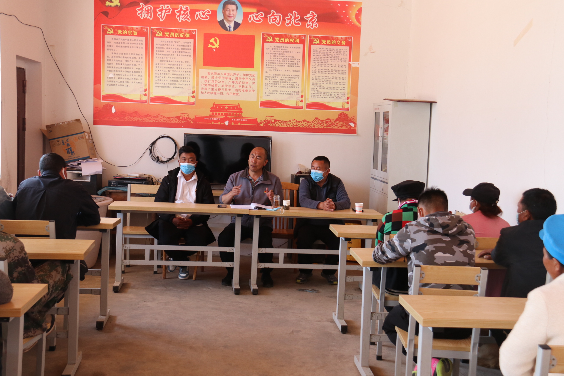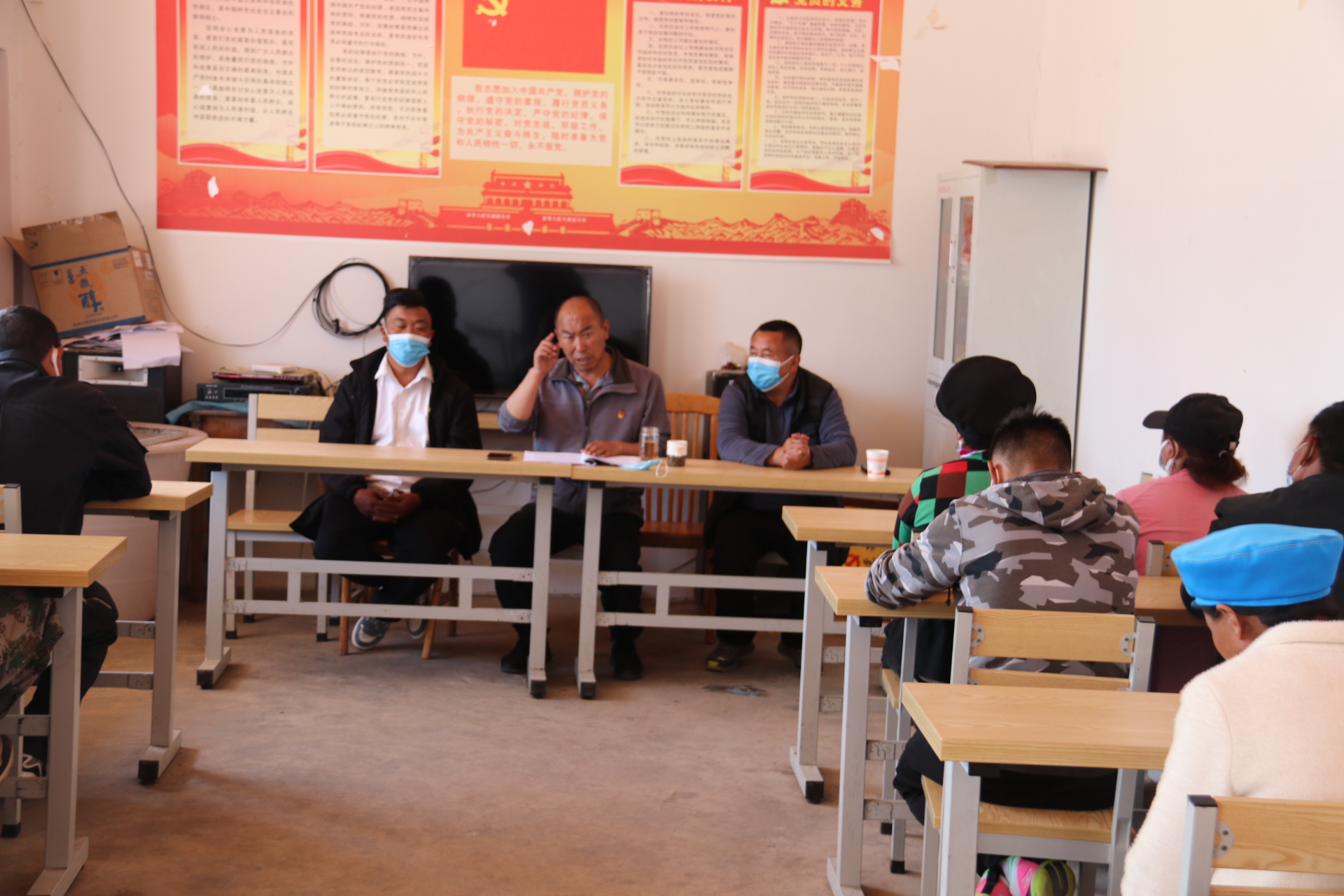 在谈及防疫工作时,余富全社长指出,疫情防控关键在农村,成败看基层。由于中路乡电站建设陆续开工,外来人口流动比较大,拉嘎洛村要按照省、州要求进行部署,做好摸排工作,加强农村地区人员网格化管理,重点做好返乡人员、外来人员、来自中高风险地区人员等重点人群的信息登记、摸排、隔离等健康管理服务工作;针对节假日摆酒聚餐、走亲访友等情况,村“两委”及驻村工作队员需严控农村聚集性活动。