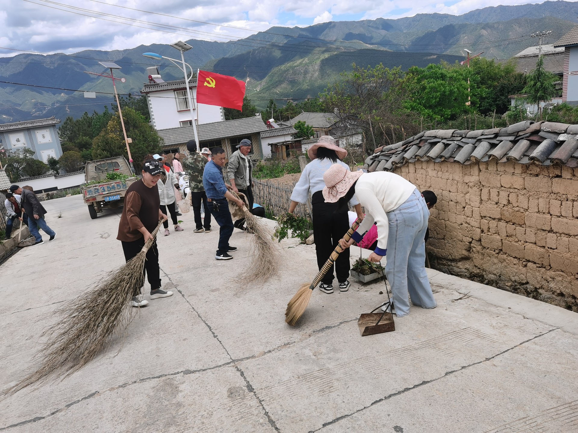 环境卫生整治,志愿服务现实效。当天,烈日炎炎,党员志愿服务队发扬不怕脏不怕累的先锋精神,抓起扫帚、拿起铲子、抡起锄头将村组道路进行了认真清扫,对道路两侧的杂草进行全面清除,对村组排水沟渠进行了清理疏通,对村庄的废旧栅栏进行了拆除,通过近3小时的努力,看着整洁的村庄,党员志愿者们脸上洋溢出幸福的笑。