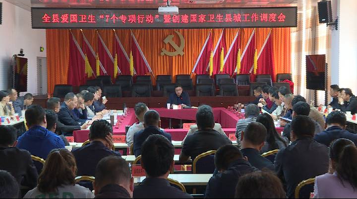 5月24日上午,在行政中心九楼会议室召开了我县推进爱国卫生“7个专项行动”暨创建国家卫生县城工作调度会,会议由县委副书记、“创卫”总指挥赵雪峰主持,县委常委、县人大、县政府、县政协在家领导班子成员,县委各部委、县级国家机关各委办局、各人民团体、县属各企事业单位、省州属驻县各单位主要负责同志,各乡(镇)党委或政府主要负责人参加了此次会议。