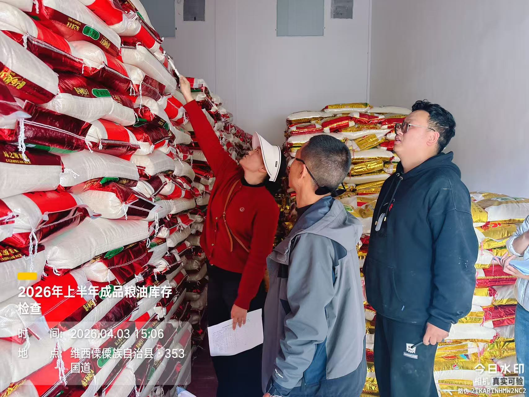 4月3日,多部门联合检查组深入县粮油收储公司拖枝粮点,开展清仓查库专项行动,全力备战2026年粮食轮换工作及州级清仓查库交叉检查。检查严格落实“全覆盖、零死角、高标准”要求,各部门分工协作、齐抓共管:县发改局牵头统筹调度,把控政策执行方向;县财政局强化储备资金监管,规范资金使用流程;县市场监管局严把质量检测关口,防控质量安全风险;农发行维西分行核查收购、储备资金流向,确保专款专用;县粮油收储公司全力配合,落实现场查验工作。