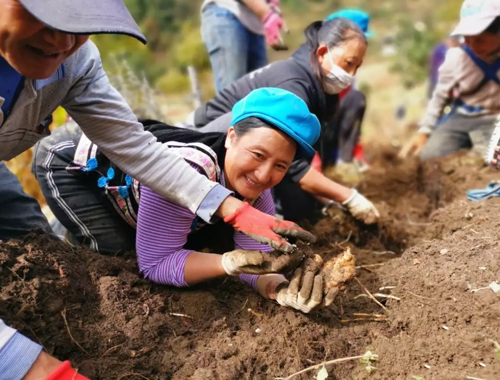 深秋正是天麻采收的最佳时机,记者来到了攀天阁乡安一村,只见田间地头一派繁忙的丰收景象,不少村民们正在香格里拉智海生物科技有限公司技术员的指导下,有条不紊地采挖着今年成熟的天麻,脸上洋溢着收获的喜悦。