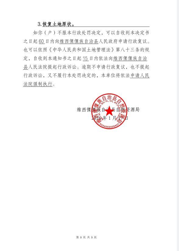 对熊文珍户的行政处罚决定书