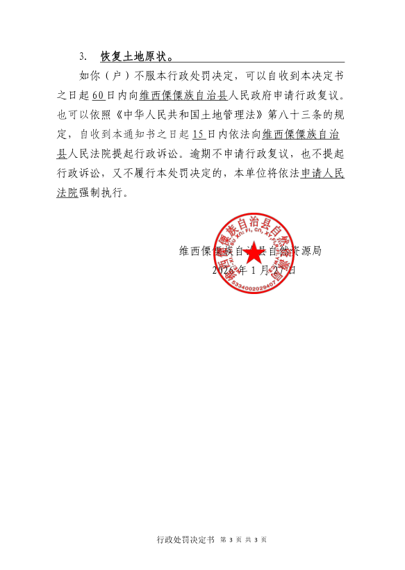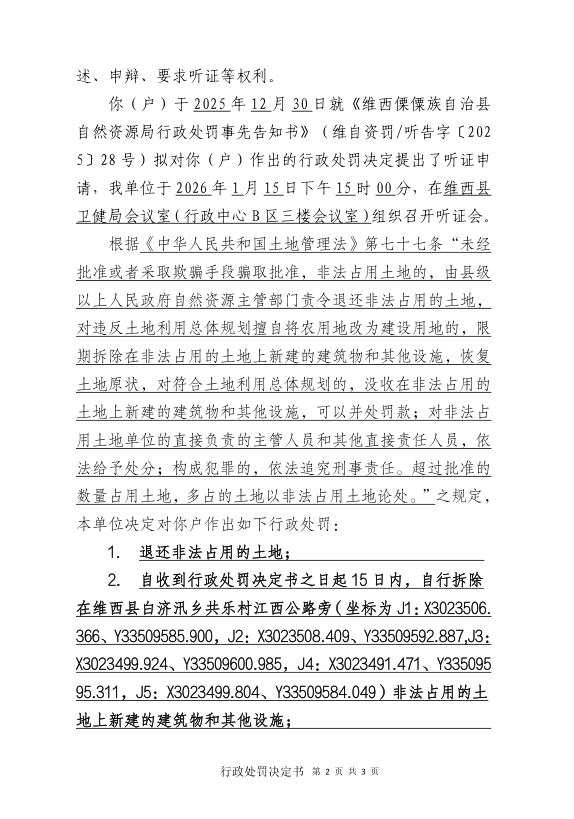 对熊文珍户的行政处罚决定书