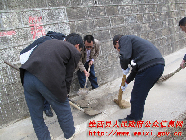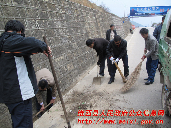 2010年3月26日下午,为落实《县城环境综合治理整顿工作会议 》精神,县人民政府办公室全体干部职工对兴维大道卫生责任路段进行了认真清扫。作为县城环境综合治理整顿工作的牵头部门,不仅要督促各有关职能部门做好相关工作,更要把工作做到实处,从自身做起,从点滴做起,为持续改善县城环境、美化维西落实长效机制。