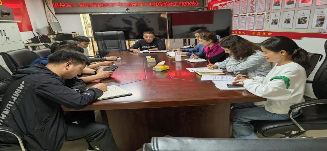 会上和副局长全文领学了《退役军人信访服务工作办法》并指出各级退役军人服务站应当进一步畅通信访渠道, 认真处理来信、来电、网上信访,热情接待来访,主动倾听退役军人的意见、建议和要求,接受退役军人监督,满腔热忱为退役军人服务。根据实际定期走访,精准掌握辖区内每名退役军人情况,重点掌握有信访诉求的退役军人情况,确因人户分离等原因无法走访的,可通过电话、网络等方式定期联系了解情况并做好相关记录 。