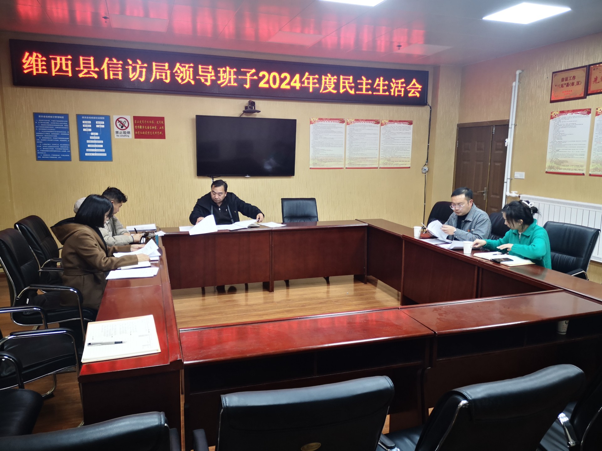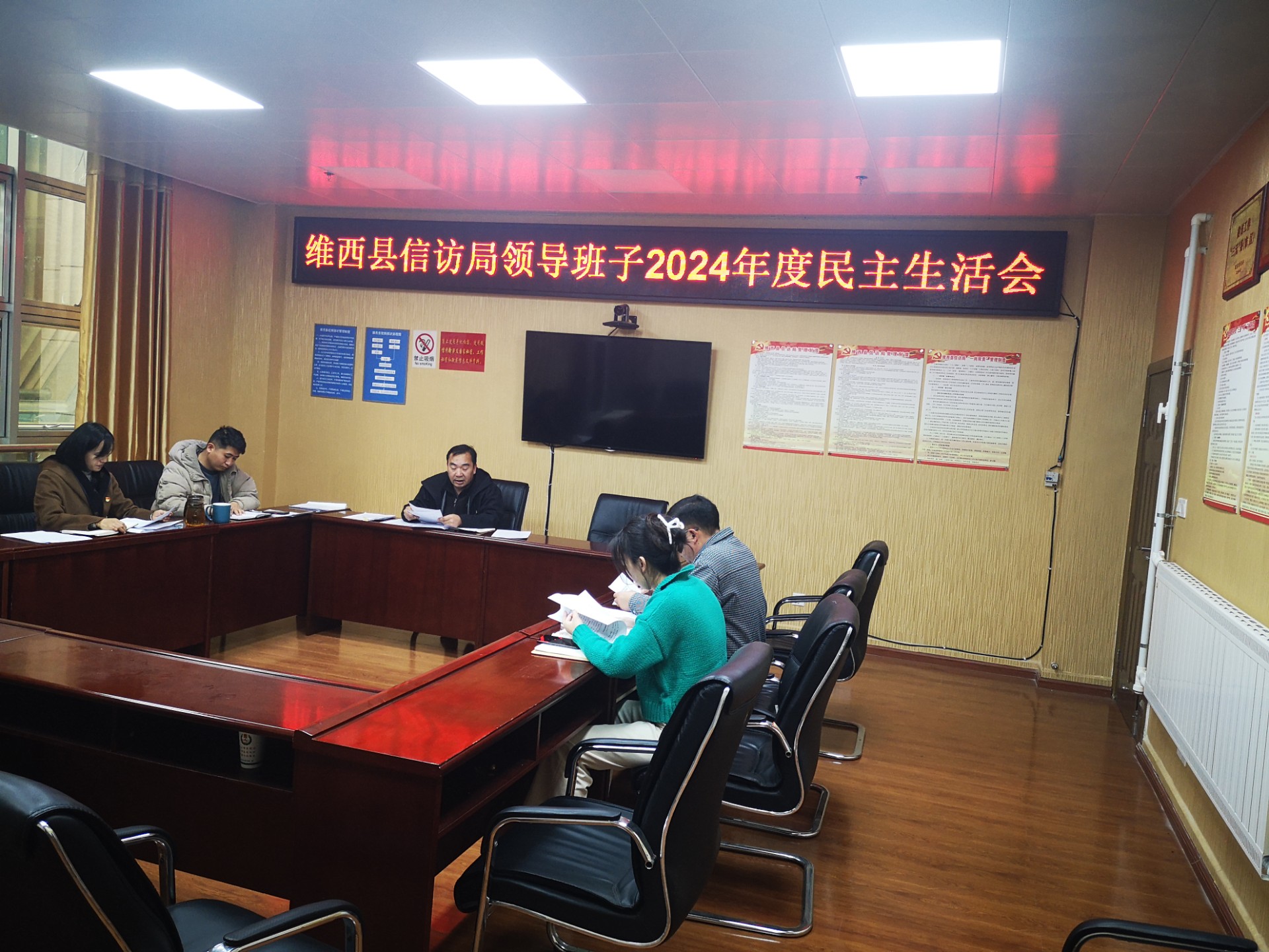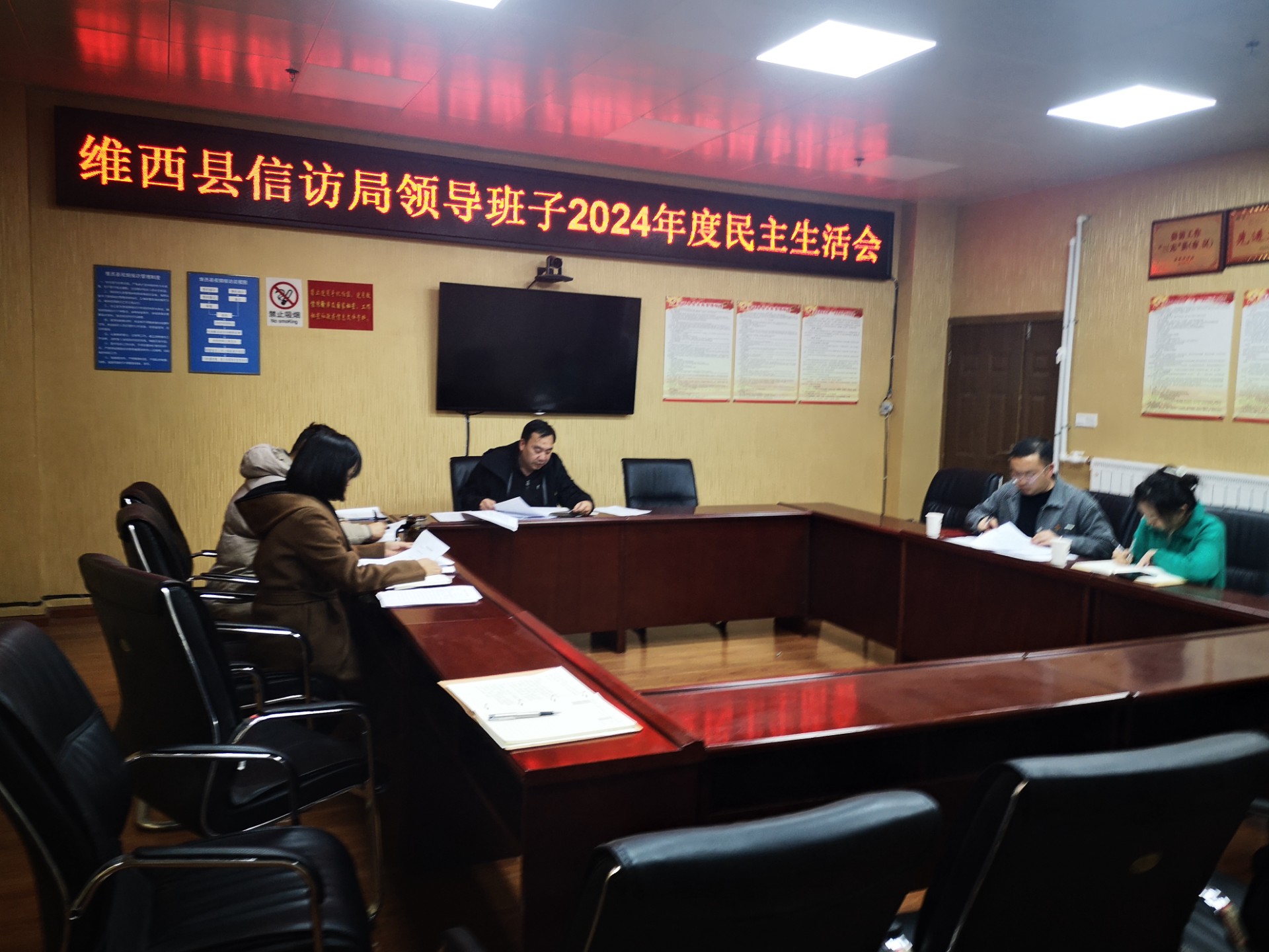 为深入学习贯彻党的二十届三中全会精神,习近平新时代中国特色社会主义思想,巩固深化党纪学习教育成果举措。维西县信访局于2025年2月25日上午召开了2024年度领导班子民主生活会。信访局党组书记、局长徐俊主持会议,信访局班子成员及党员代表参加了会议,县委第8督导组参会指导并参加了此次会议。