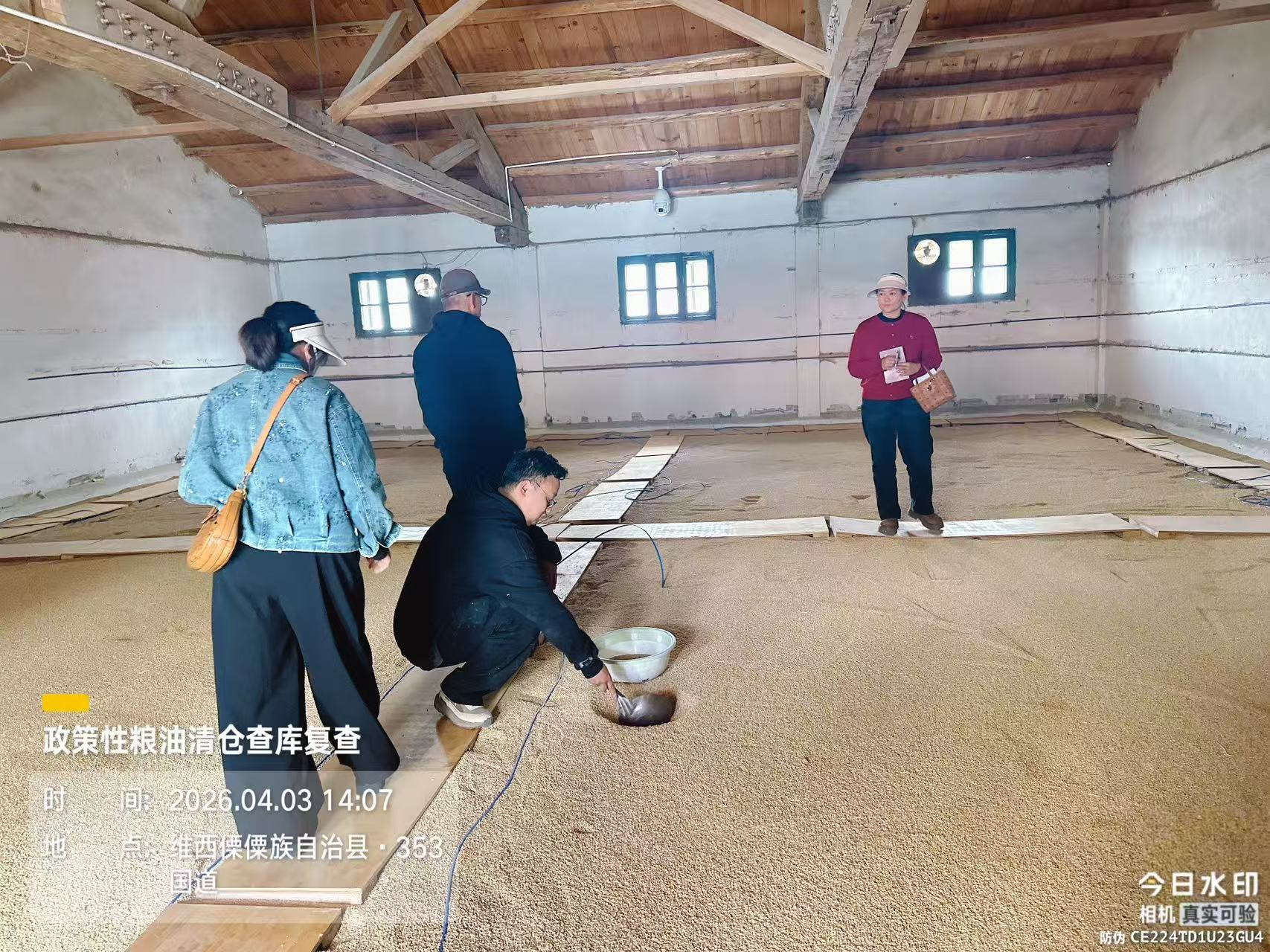 4月3日,多部门联合检查组深入县粮油收储公司拖枝粮点,开展清仓查库专项行动,全力备战2026年粮食轮换工作及州级清仓查库交叉检查。检查严格落实“全覆盖、零死角、高标准”要求,各部门分工协作、齐抓共管:县发改局牵头统筹调度,把控政策执行方向;县财政局强化储备资金监管,规范资金使用流程;县市场监管局严把质量检测关口,防控质量安全风险;农发行维西分行核查收购、储备资金流向,确保专款专用;县粮油收储公司全力配合,落实现场查验工作。