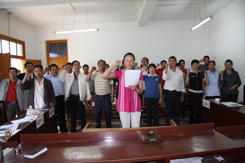 维西县人民法院党组高度重视目前全国正在开展的创先争优活动,按照维西县人民法院党支部创先争优活动实施方案认真开展党性教育,在建党89周年到来之际,于2010年6月25日召开迎“七一”重温入党誓词、吸纳新党员大会。通过重温入党誓词激励党员干部牢记党的宗旨,加强党性锻炼,模范履行党员义务,带头学习党章、遵守党章、执行党章、维护党章,永葆党员先进性。会议决定:在立案庭设立党员示范窗口、示范岗,在执行、刑事...