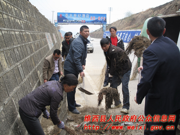 2010年3月26日下午,为落实《县城环境综合治理整顿工作会议》精神,县人民政府办公室全体干部职工对兴维大道卫生责任路段进行了认真清扫。作为县城环境综合治理整顿工作的牵头部门,不仅要督促各有关职能部门做好相关工作,更要把工作做到实处,从自身做起,从点滴做起,为持续改善县城环境、美化维西落实长效机制。