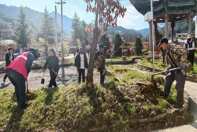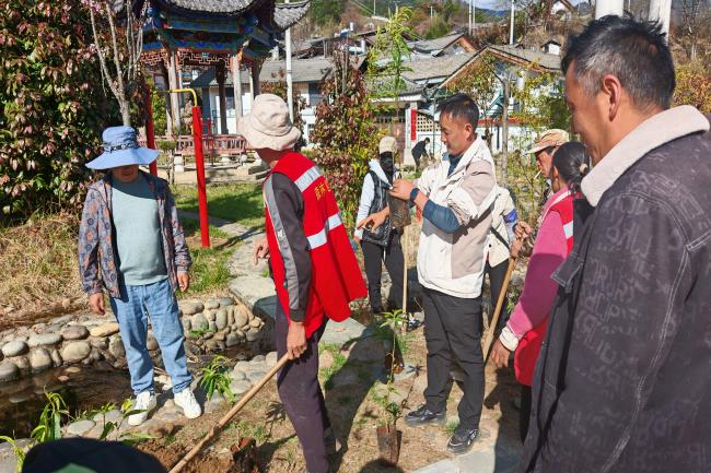 活动现场,参与人员热情高涨、分工协作、配合有序,在村内步行道路两侧及农家乐庄园周边,严格按照规范流程开展铲土挖坑、扶苗正株、培土压实、浇水灌溉等作业,以饱满干劲投身植树增绿,营造出人人参与、共建共享的浓厚氛围。