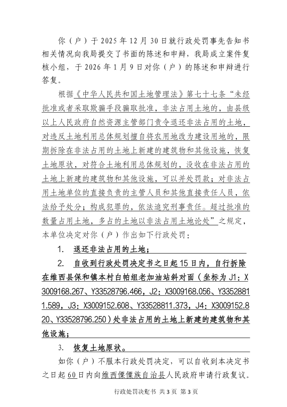 对陈玉龙户的行政处罚决定书