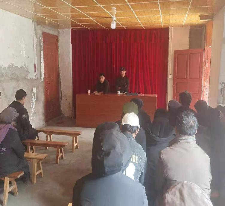 为全面贯彻落实习近平新时代中国特色社会主义思想,深入学习贯彻党的十九届五中全会、中央第七次西藏工作座谈会和习近平总书记考察云南重要讲话精神、省委第三次涉 藏工作会议、十届省委十一次全会、八届州委十一次全会、十三届县委七次全会精神,坚决维护“两节”两会、三月敏感期等重要节点全县社会大局和谐稳定,统筹做好维护稳定工作任务。在2021年3月14日,念里米村班子成员及驻村工作队员去到念里米村窝巴底教堂宣传“抓稳定防疫情固脱贫促团结”内容,宣传宗教事务条例、民族进步条例、讲清保障宗教信仰自由同维护宗教和谐稳定的关系,引导信教群众共同维护团结和谐。讲清楚僧俗群众“十个不准”、“五个严禁”等政策界限,牢牢掌握反分裂斗争主动权。以“五个有利于”为标准,积极引导宗教与社会相适应,引导宗教人士自觉践行“四条标准”,依法依规开展宗教活动。