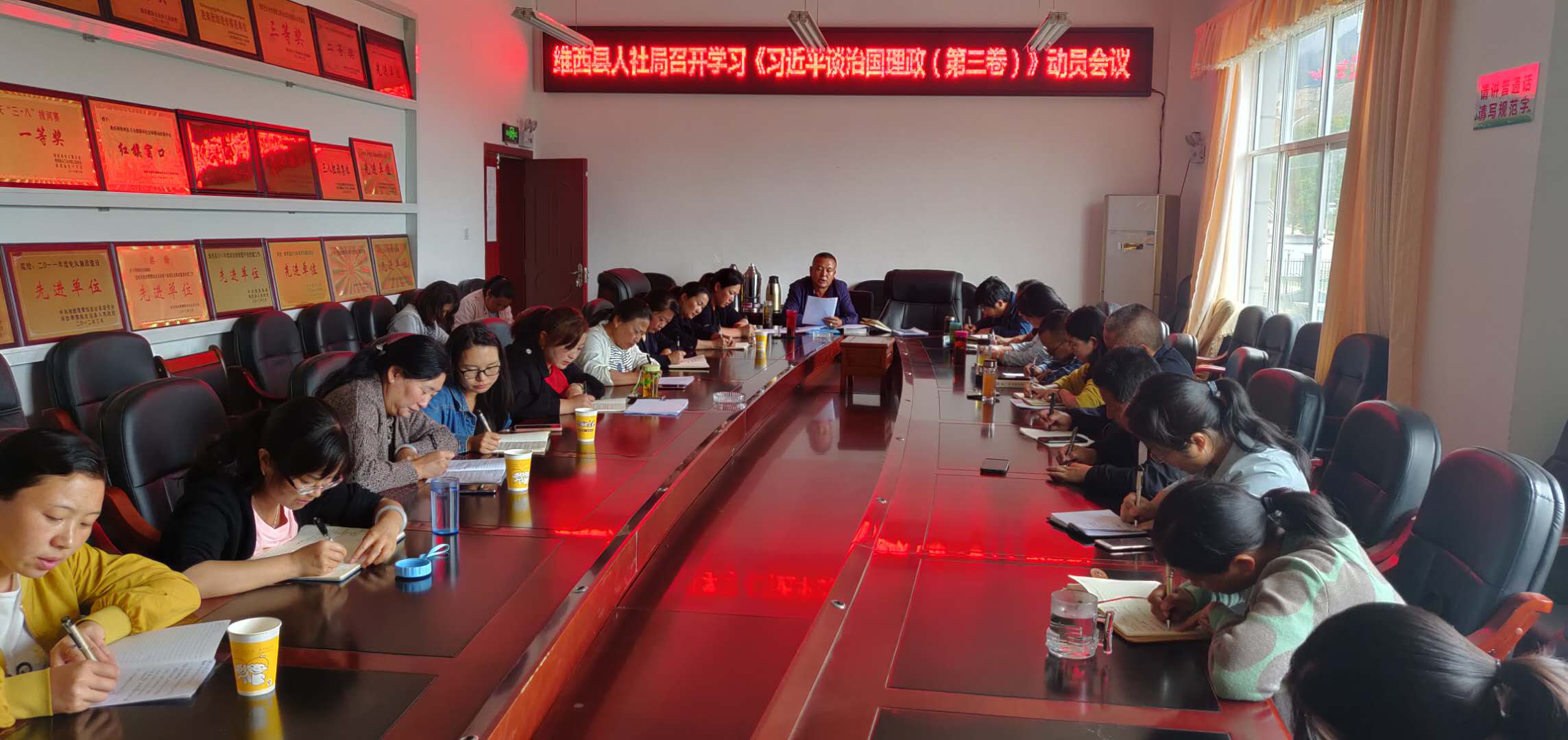 为进一步做好《习近平谈治国理政》第三卷一书学习宣传工作,动员全局干部职工深入学习宣传《习近平谈治国理政》 第三卷,并把学习宣传贯彻习近平新时代中国特色社会主义思想和习近平总书记考察云南重要讲话的精神不断引向深入,2020年8月24号下午,维西县人社局组织召开《习近平谈治国理政》第三卷学习动员会议,会议由县人社局党组主要领导主持,在家干部职工34人参。