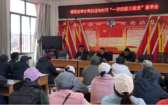 为深入贯彻执行好“迎接党的二十大 一学四抓三促进”专项活动精神,学习宣传好中央、省、州、县重要会议精神,保障专项活动圆满结束,2月23日,维西县审计局党组成员、副局长李军同志带队到挂钩村岔枝洛开展“一学四抓三促进”专项活动宣讲。岔枝洛村“两委”、驻村工作队和全村党员参加了宣讲活动。