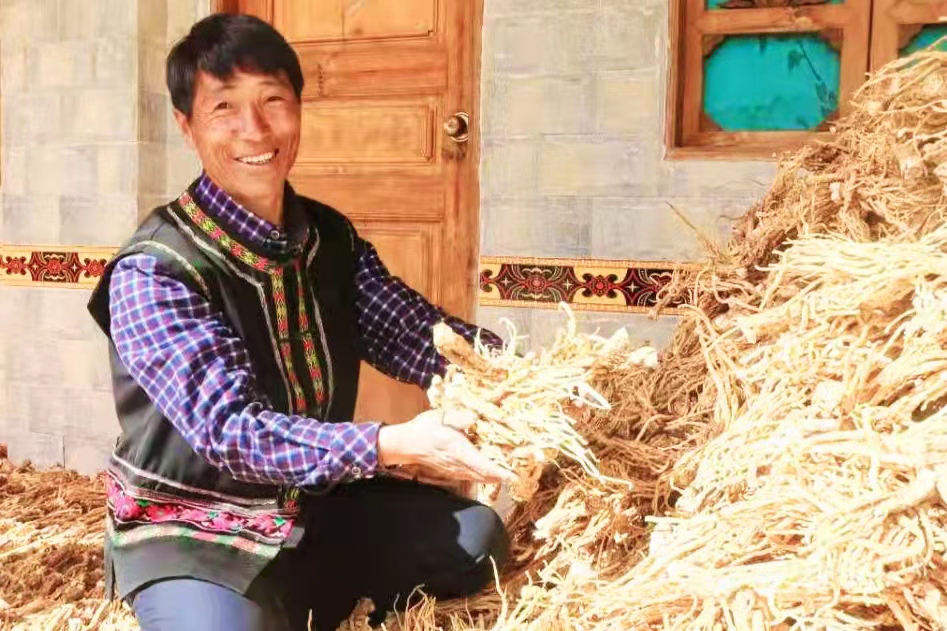 美光村师资组傈僳族妇女蜂玉莲今年64岁了,儿女们都劝她闲下来,但她就是舍不得闲。腊八节这天,儿子儿媳挖药材去了,老人忙着在家里晾晒秦艽。“我们家有20多亩药材地,今年能挖的有12亩多,收入超过10万元。现在,我们的药材不愁卖,公司来家收药材。今年秦艽、木香、当归价格比往年好,我们家的收入也比往年要多。”说罢,蜂玉莲老人的脸上绽放出灿烂的笑容。