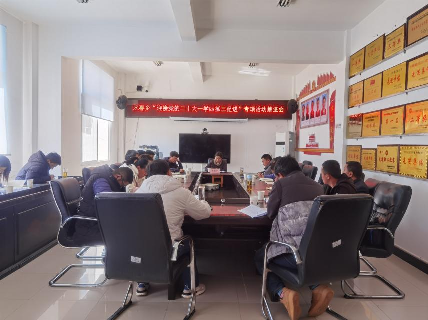 2月16日,永春乡召开“迎接党的二十大 一学四抓三促进”专项活动工作推进会议。会议由永春乡党委书记徐丽芬主持,各专项行动组组长、联络员以及各村总支书记、工作队长参加了会议。