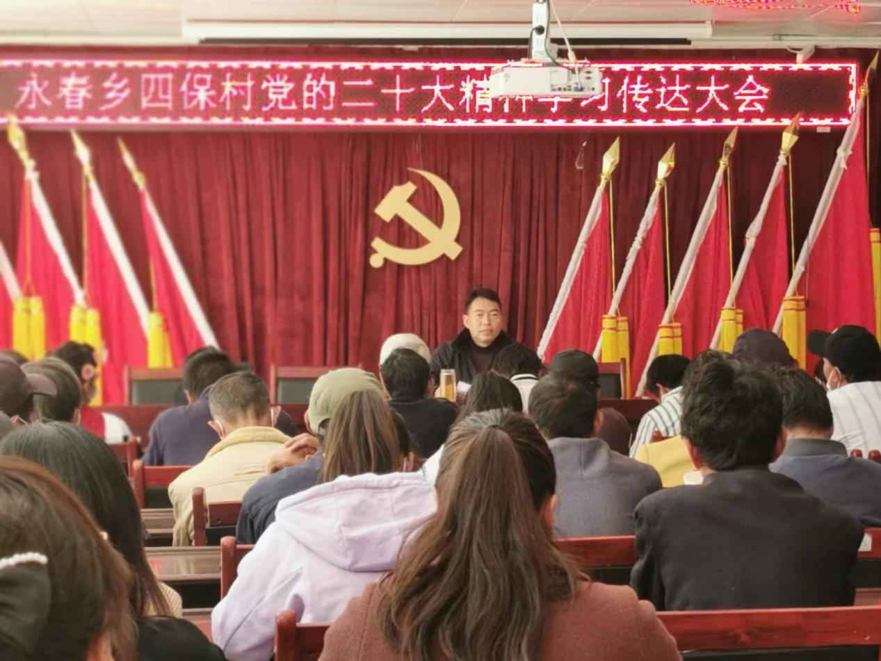 在四保村党的二十大精神学习传达大会上,姬兴江向四保村全体党员生动精彩讲解了党的二十大基本情况、十九届中央委员会报告内容、十九届中央纪委工作报告内容、党章修订的主要内容等几个方面内容,并带来州委书记王以志对全体党员的问候。姬兴江指出,党的二十大是一次高举旗帜、凝聚力量、团结奋进的大会,为新时代新征程党和国家事业发展、实现第二个百年奋斗目标指明了前进方向、确立了行动指南,催人奋进。姬兴江要求,一是全体党员要深刻认识党的二十大党的重要意义,凝聚多方力量,紧紧围绕在以习近平同志为核心的党中央周围,贯彻落实党的二十大提出的各项目标任务;二是全体党员认真学习报告全文,发挥农村基层党组织的政治功能和组织优势,立足为民办实事、办好事,鼓起斗志,发挥党员先锋模范作用,用自身带动群众接续奋斗,将乡村振兴美好蓝图变为现实。