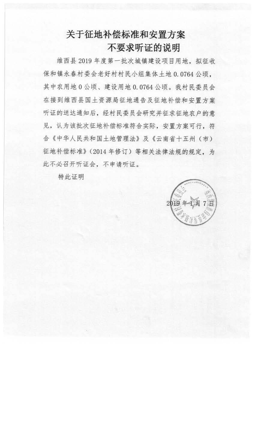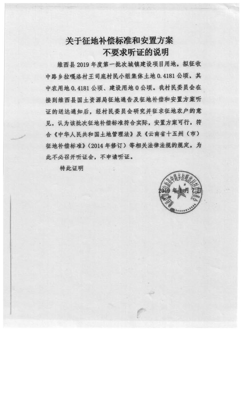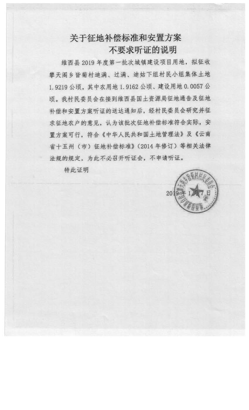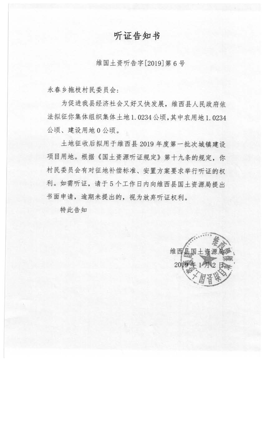 【征地拆迁】维西县2019年第一批次城镇建设用地听证信息公示