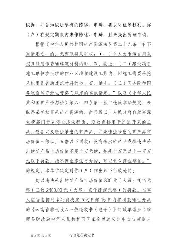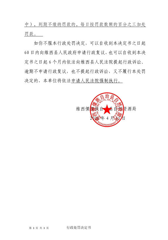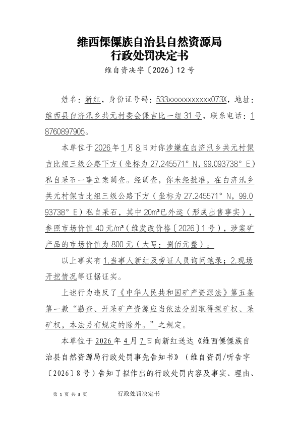 对新红户的处罚决定书